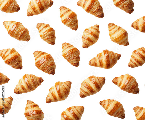 Croissant delight top view bakery. Isolated on transparent background, png.