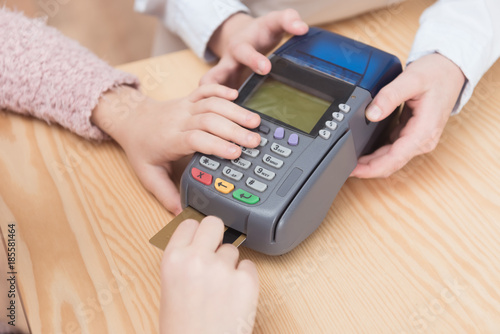 table, buy, paying, buying, girl, people, wooden, card, boy, hand, service, interior, indoor, cafes, wireless, indoor, pay, inside, arm, partial, cropped, costumer, two people, closeup, credit card