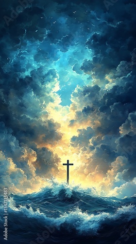 cross, cloud, sky, wave, religion, faith, heaven, ocean, artwork, spiritual, light, nature, water, christian, symbol, hope, belief, worship, divinity, god, belief, spirituality, pray, divine, holy, religious, jesus christ, prayer, calm