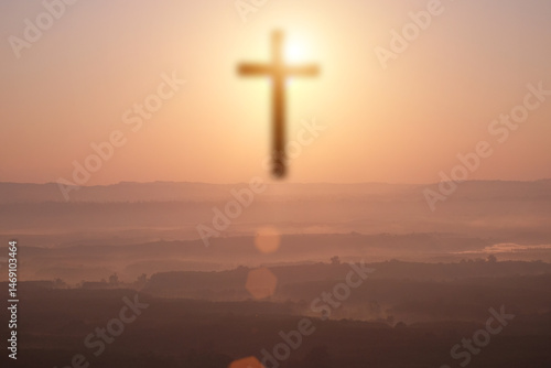 Cross of Jesus Christ in the morning mist. Cross of Jesus Christ.