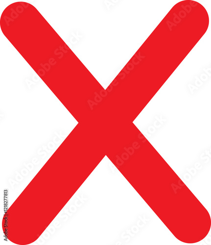 Cross sign icon in red flat style. Wrong mark symbol. NO button for checkbox voting. Disagree tick box symbol. Cross X sign. Cross brush vector illustration isolated on transparent background.