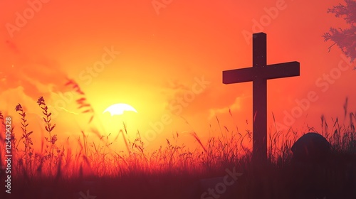 Cross silhouetted at glowing sunrise symbolizing resurrection of Christ