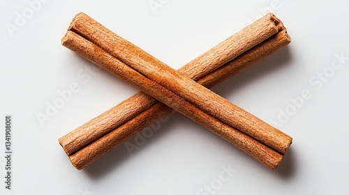 Crossed cinnamon sticks on a white background, showcasing their rich brown color.