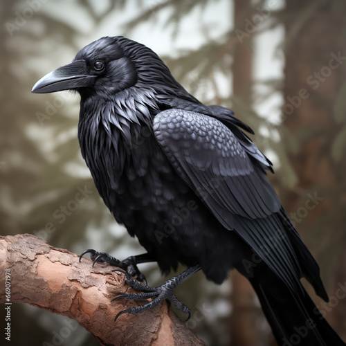 Crow perched on tree branch. AI Generative