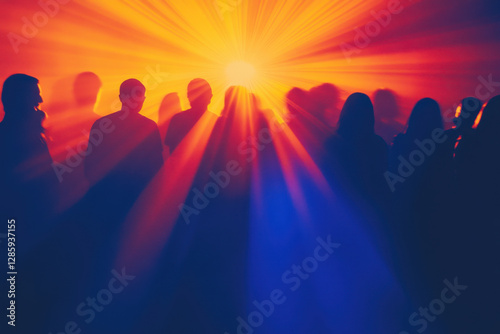 crowd, celebration, dancing, silhouette, background, blue, orange, party, festival, joy, energy, movement, music, light, night, concert, fun, excitement, gathering, enthusiasm, happiness, rythm, atmosphere, event, motion, performance, oneness, cheer, entertainment, nightlife, dynamic, vibrant, group, expressive, lively