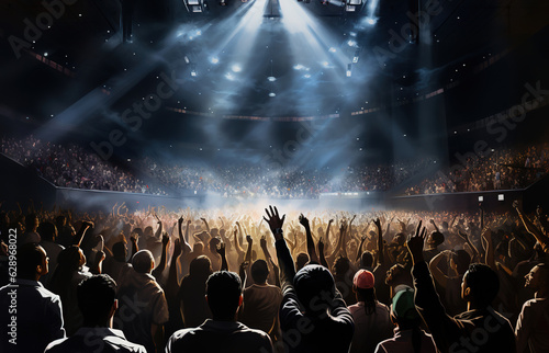 people, audience, music, nightclub, cheering, man, woman, applause, event, performance, spectator, arena, atmosphere, celebrity, club, concert, entertainment, excitement, festival, live, party, rise, show, singer, stadium, stage, star, up, appearance, crowded, happiness, heat, scene, tour, rock, auditorium, dancing, dj, glowing, graduation, ai