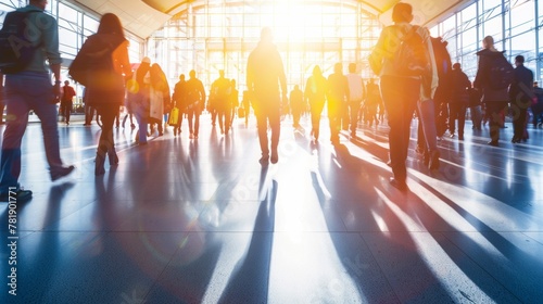 aerodrome, traveler, crowd, silhouette, sunlight, terminal, tied-up, people, transportation, travel, walking, indoor, modern, public, transit, journey, commuting, passenger, bustling, architecture, business, tour tourism, arrival, departure, rush, movement, shadow, floor, window, ray, structure