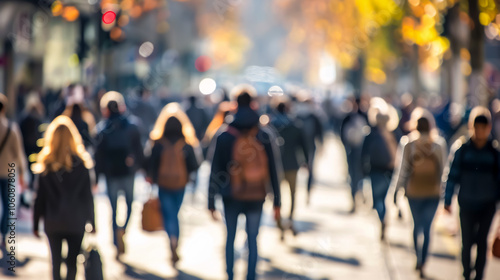 Crowd Walking on Busy City Street: A crowd of anonymous people walking along a busy city street.
