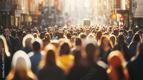 Crowded urban street scene with diverse faces representing various age groups and ethnicities, symbolizing demographic diversity and multiculturalism, with ample copy space for text or design elements