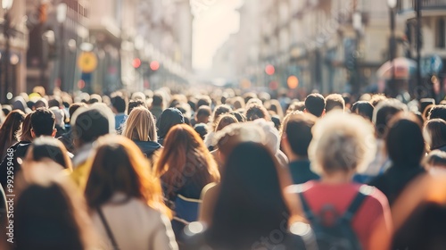 Crowded urban street scene with diverse faces representing various age groups and ethnicities, symbolizing demographic diversity and multiculturalism, with ample copy space for text or design elements
