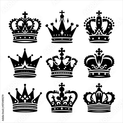 crown, princess, vector, icon, king, luxury, queen, royalty, silhouette, element, emperor, set, vintage, royals, design, insignia, jewellery, success, kingdom, logotype, prince, collection, decoration, award, gold, monarch, winner, aristocracy, classic, heraldry, isolated, badge, emblem, graphic, jewellery, leadership, ornament, power, shield, trophy, wealth, level, tiara, diadem, logotype