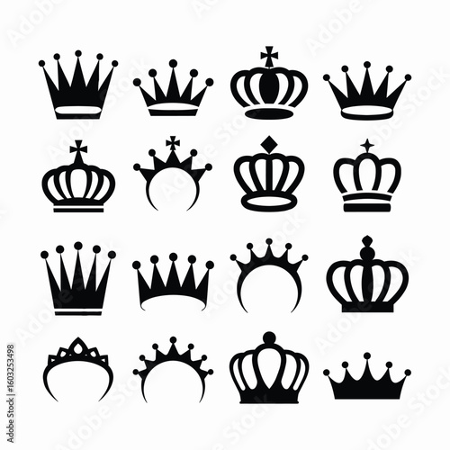 crown, icon, set, vector, illustration, royalty, regal, king, queen, luxury, gold, symbol, emblem, accessory, decorative, graphic, royals, coronation, ornate, elegant, design, vintage, modern, premium
