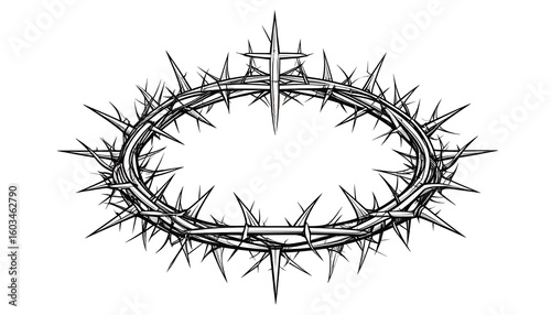 crown, thorn, cross, oval, outline, black, white, religious, christian, mediaeval, graphic, design, illustration, vintage, symbol, sacred, jesus christ, suffering, martyrdom, art, spiritual, line, drawing, vector, detailed, frame, decorative, ornament