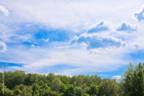 green, crown, sky, blue, cloud, cloudy, background, leaf, tree, nature, natural, park, outdoors, tree branch, cumulus, clear, fine, day, white, dark, forest, heaven, summer, spring, plant, grey, air, airspace, shade