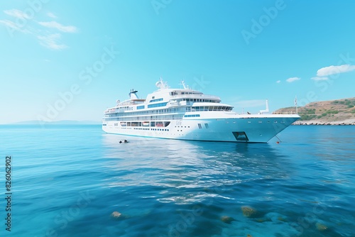 cruise ship, sea, computer, digital, image, ocean, vacation, travel, maritime, vessel, nautical, seascape, illustration, graphic, design, technology, virtual, water, luxury, destination, tour tourism, scenic, horizon, wave, summer, holiday, recreation, adventure, journey, floating, liner, sail, concept, art, graphic, panoramic, transportation, relaxation, blue, background, render, picturesque