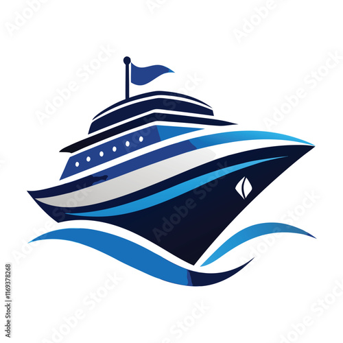 cruise ship, yacht, ship, travel, vacation, adventure, ocean, sea, water, wave, silhouette, logotype, graphic, blue, navy blue, white, travel agency, tour tourism, design, graphic design, vector, illustration