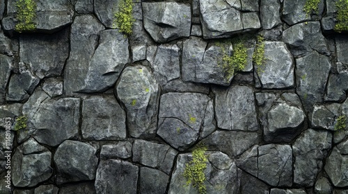 Crumbling stone wall with moss and deep cracks, realistic texture