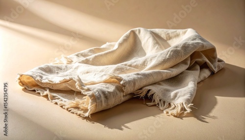 Crumpled Muslin Cloth with Frayed Edges on Soft Beige