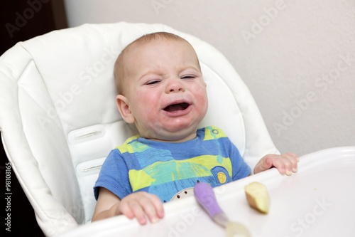 Crying baby in highchair