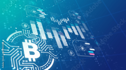 Crypto currency bitcoin, modern graph chart trading for investment, 3d rendering