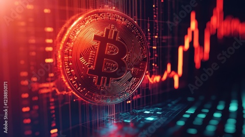 Cryptocurrency profits, Bitcoin rising on stock graph, 3D illustration.