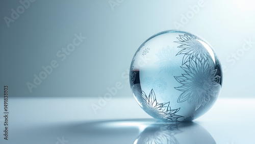crystal ball, crystal, floral, sphere, glasses, crystal ball, reflective, floral pattern, beauty, elegance, detail, illumination, calmness, artistry, decorative, ornament, delicate, precision, design, pattern, light, shadow, semitransparent, round, polished, surface, object, artistic, modern, exquisite, aethereal, pristine, calm, harmony, balanced, graceful, composition, intricate, clean, simple, pure, magic, fortune, future, divination