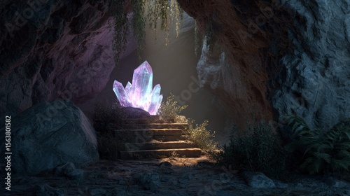 cave, crystal, rock, step, light, nature, stone, formation, purple, blue, mineral, dark, interior, fantasy, adventure, illuminated, glowing, ancient, mystery, environment, tour tourism, travel, landscape, design, illustration, creative, image, element, texture, illumination, shadow, isolated, commercial, editorial, use, plant, flora