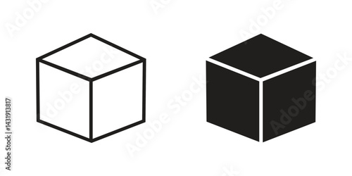 Cube icons. stroke line and black solid icons