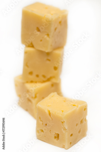 Cube of cheese isolated on a white background