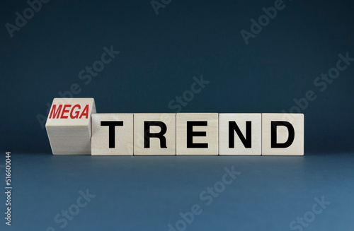 Cubes form the words Trend or Mega trend.