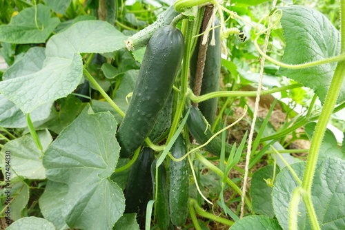 cucumber plant with a lot of fruit production. cucumber plant growing on a trellis of plants