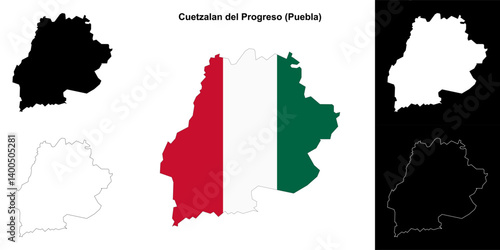 Cuetzalan del Progreso municipality (Puebla) outline map set