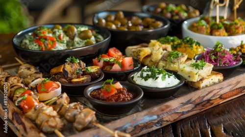 Culinary Delight: Stylish Gourmet Tapas Platter with Assorted Small Bites and Dips