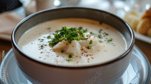 soup, food, bowl, vegetable, meal, dish, dinner, healthy, white, cookery, cream, lunch, chicken, rice, meat, hot, epicure, plate, vegetarian, delicious, onion, fresh, cooking, green, mushroom, spoon