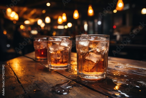 soda, peach, bar, glasses, drink, wood, light, counter, celebration, environment