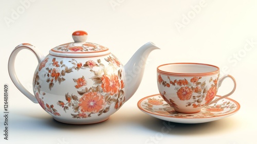cup of tea and teapot isolated