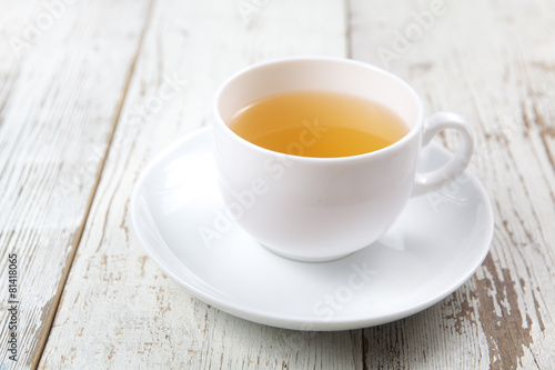 Cup of tea on white wooden