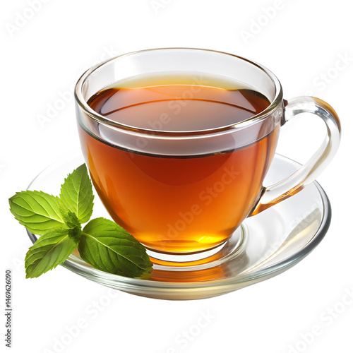 cup of tea with mint isolated on white background. Transparent PNG file type available .