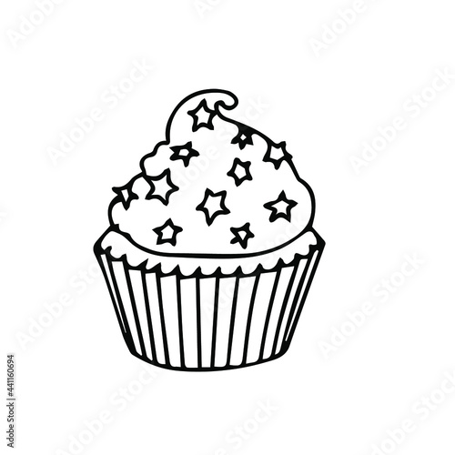 Cupcake hand drawn illustration. set of vector cupcakes for your design. doodle isolated on white background