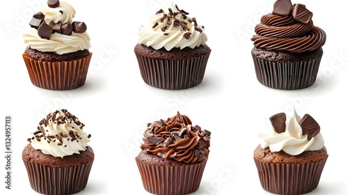 white background, cupcake, dessert, sweet, chocolate, frosting, baked goods, bakery, delicious, treat, food, confectionery, pastry, epicure, icing, cup, celebration, snack, cake, sweet, indulgence, deliciously, cocoa, sugar, brown, vanilla, sprinkle, creamy, decadent, tasty, cupcake, baked, isolated, assortment, variety, collection, whipped cream, row, arrangement, display, confection, white