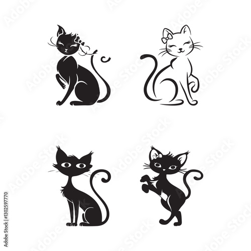 Curious and Cute A Set of Artistic Cat Silhouettes