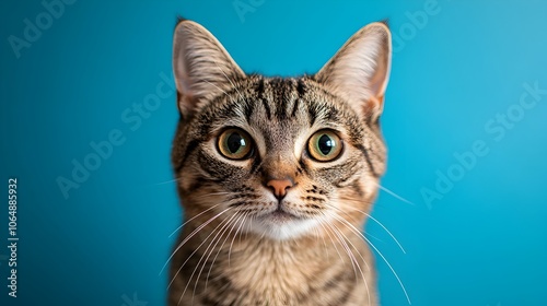 cat, felino, animal, pet, domestic, curious, alert, portrait, closeup, studio, blue, background, calendar, commercial, digital, bright, vibrant, eye, whisker, fur, adorable, cute, furry, mammal, cat, kitten, meow, tail, paw, whisker