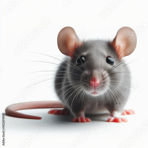 Curious gray rat isolated on transparent on white background