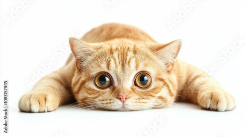 Curious scottish fold cat perked up on white surface for stunning pet photography