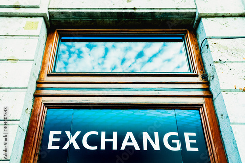 Currency exchange office in a tourist street of the European city of Madrid.