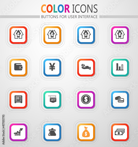 foreign, buttons, decoration, shadow, money, flat, settlement, bill, stroke, vector, currency, protection, frame, interface, coin, set, insurance, calculating machine, colours, icon, cash, exchange, pound, euro, dollar, yen, graphic, safe, credit, card, billfold, bag