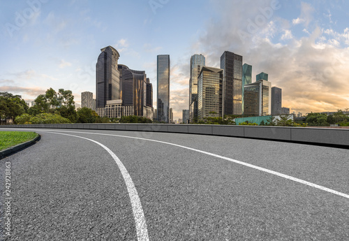 curve asphalt road with city skyline background in china