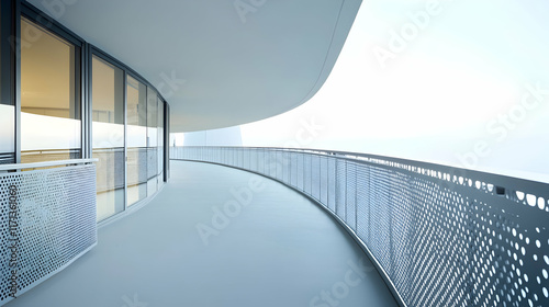 balcony, apartment, urban, minimalist, curved, metal, railing, perforated, concrete, flooring, smooth, modern, architectural, symmetric, sleek, refined, functional, contemporary, bold, exclusive, structural, harmonious, premium, timeless, sculptural, polished, distinctive, inviting, vibrant, innovative, artistic, stylish, chic, balanced, secure, elegant, serene, modernistic, textured, hard-wearing, iconic, bright, crafted, architecture, building, perspective, steel, construction