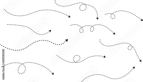 arrow, arrow, curved, curve, dotted, dot, dash, hand-drawn, vignetting, vector, symbol, direction, guide, navigation, pointer, indicator, graphic, icon, signs, flow, infographic, path, route, movement, turn, swirl, loop, bend, set, collection, element, abstract, simple, minimal, isolated, black, outline, design, decoration, pointing
