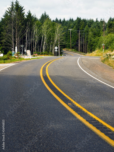 Curved Two Lane Country Road Winding Through a Forest